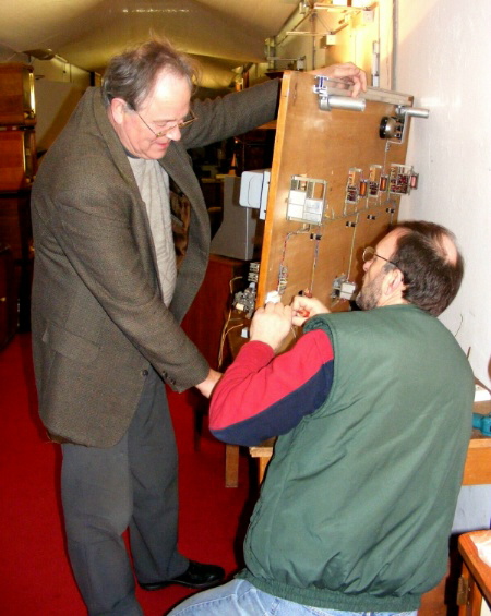 Es war mal wieder soweit, Arbeit musste erledigt werden. Wir haben ein Telefon-Vermittlungs-Modell bekommen, nicht funktionstüchtig, aber in gutem Zustand. Für unsere Telefon begeisterten Mitglieder Manfred Seidel und Peter Carstensen ist es natürlich eine willkommene Herausforderung, diese Anlage wieder instand zu setzen.