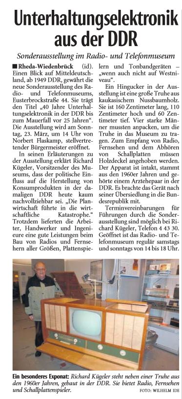 Am Sonntag, dem 23.März ist im RTM die neue Sonderaustellung „40 Jahre Unterhaltungselektronik in der DDR bis zum Mauerfall vor 25 Jahren“ im Beisein des Bürgermeisterstellvertreters Herrn Flaskamp eröffnet worden.