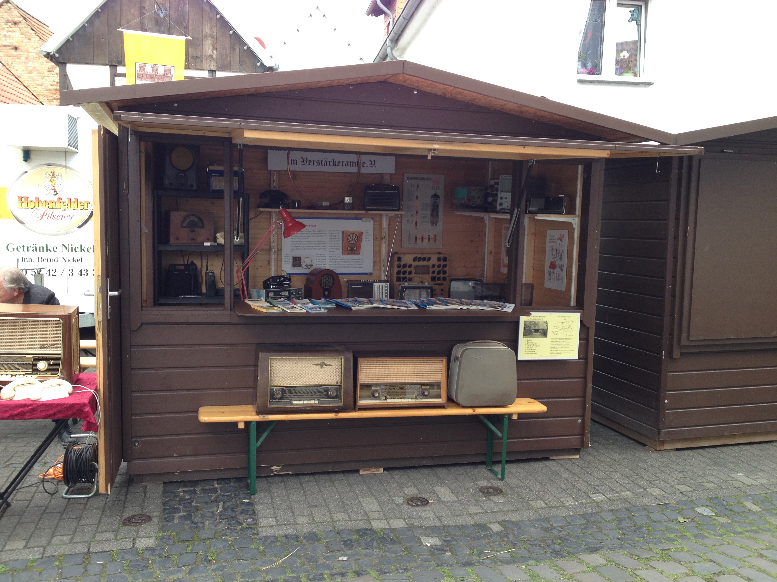 Ausgestellt sind hochwertige Deutsche-Export-Radios aus dem 2. Weltkrieg, eine Leihgabe des GFGF (Gesellschaft der Freunde der Geschichte des Funkwesens). Unser Vereinskollege Werner Bösterling aus Arnsberg stellt zu diesem Thema seine Sammlung Winterhilfswerk (WHW) in den Vitrinen aus.